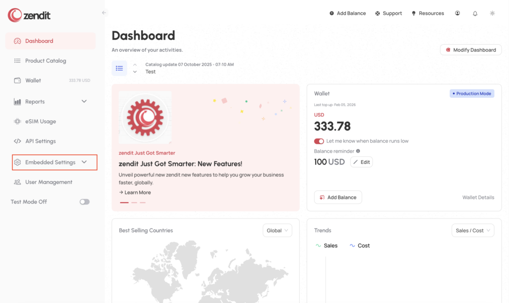To get started with Zembeddables, locate the Embeddable menu in the zendit console.