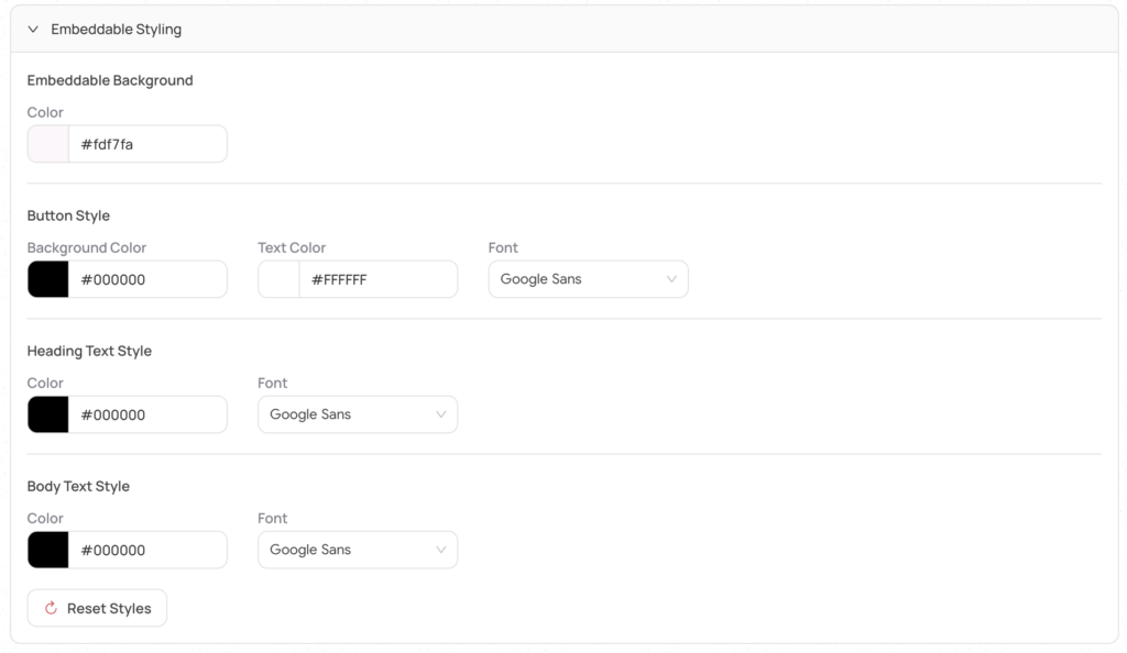Heading text styles control the headings in the Zembeddable and you may select a font and color for the text.